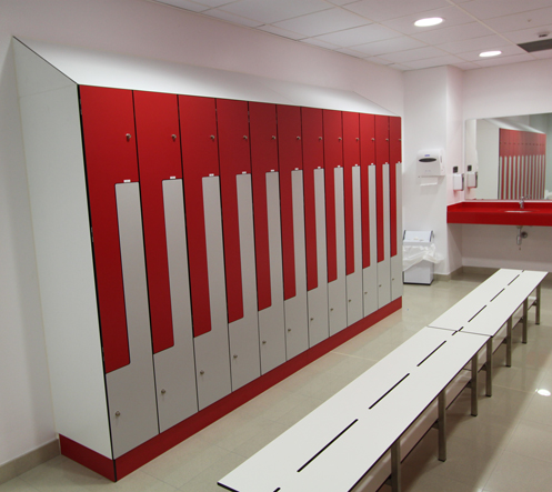 – Armoires et casiers (différents modèles), bancs pour chaussures, placards, plans de travail fabriqués sur mesure